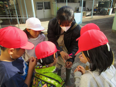 タブレットで写真を撮ったり、ものさしで大きさを計ったりしました。