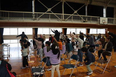 今日の全校体育は雨でグランドが使えませんでしたので、体育館で行いました。