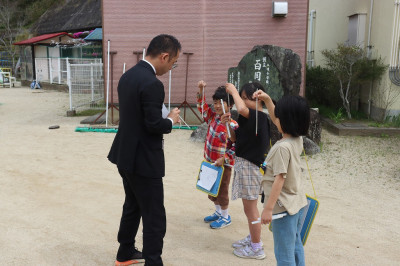 飼育・栽培委員会(1・2年生)、給食委員会(3・4年生)、放送・図書委員会(5・6年生)に分かれて、