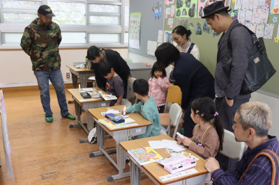 児童たちが考え、準備をした「おみせ」がたくさんならんでいて、楽しそうです。