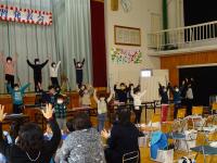 入場の仕方や隊形移動を確認し、曲に合わせて踊りました。