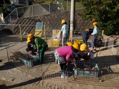 1・2年生はポスター、6年生はホウセンカの種子をとりました。