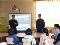 小学生は運動場の草刈りの後、校舎内の清掃を行いました。作業終了後、児童を代表して6年生がお礼の挨拶をしました。